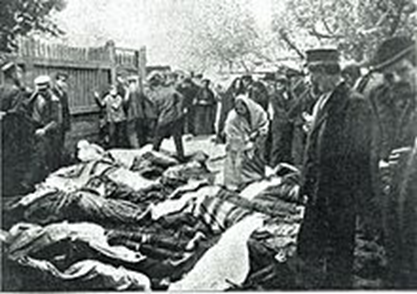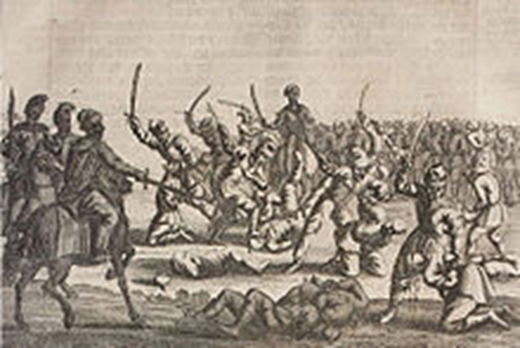 1648-1655 : Le cosaque ukrainien Bohdan Chmielnicki dirige l'insurrection qui se conclura par le massacre de la noblesse locale ainsi que de la communauté juive à la fois parce que alliée des nobles et par antisémitisme. 65 000 Juifs périssent et autant de nobles et de chrétiens. Après l’invasion du pays par les Suédois, le Royaume de Pologne plonge dans une période de chaos (1655-1658) Les Juifs se trouvent pris entre deux feux : ceux qui étaient épargnés par les Suédois étaient attaqués par les Polonais les accusant d’avoir collaboré avec l’ennemi. Les horreurs de cette guerre furent aggravées par des épidémies. Du fait des Cosaques et des Suédois, la communauté est diminuée de 100 000 personnes. |